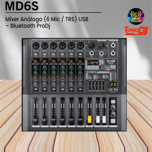 MD6S Mixer Análogo (6 Mic / TRS) USB – Bluetooth ProDj